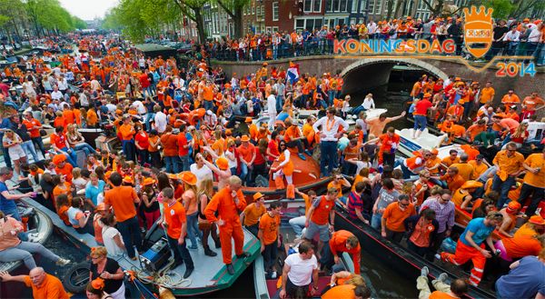 El día del rey celebramos el cumpleaños de nuestro rey como si fuera el fin del mundo. Todos salen a la calle vestidos en el color nacional, naranja. El color naranja refiere al apellido de nuestra familia real, Van Oranje, que significa 'de naranja'. Aunque en general los holandeses no son muy nacionalistas, el 27 de abril nos sentimos unidos por el cumpleaños del rey Willem-Alexander. Otra ocasión en que demostramos el amor por nuestro país es durante la copa mundial del fútbol. Las calles y la gente se convierten en una ola naranja gigantesca.